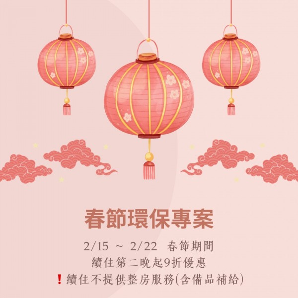專案時間:2/15~2/22期間 專案內容:續住第二晚不整房9折優惠 若續住加床不列入9折優惠內 (官網訂房欲參加專案請來電告知) --- 原鄉溫泉民宿 ▸電話訂房:03-8876307、8876308 ▸官網訂房:www.yuan-hhs.com.tw ▸LINE訂房:@gus5181s |